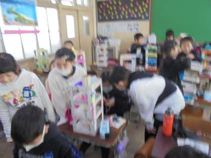 友達の作品の工夫を見ながら,作品作りを進めています。
