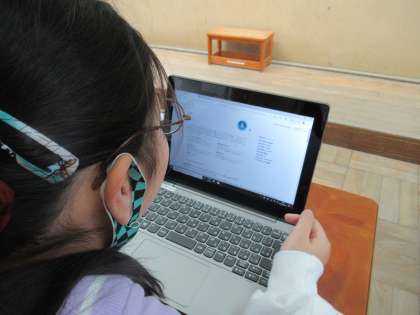 今年度導入されたGIGA端末を使って,一人一人調べる学習をしました。パスワードの入力が難しいのですが,何度も使ううちに上手に使いこなせる姿も見られるようになりました。友達同士で教え合ったり助け合ったりして,みんなが使いこなせるようにしています。