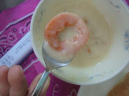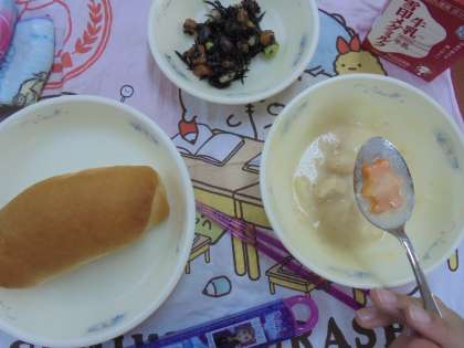 今日の給食のジャガイモのクリームシチューにハッピーキャロットが入っていました!ハートの外側や,クマとクマの外側も入っていました!みんなシチューをまぜまぜしながら,にんじんをさがしていました。おうちでハッピーキャロットを作ってもらったという話も聞きました。おうちでも楽しく食べる工夫をしていただいて,ありがとうございます。