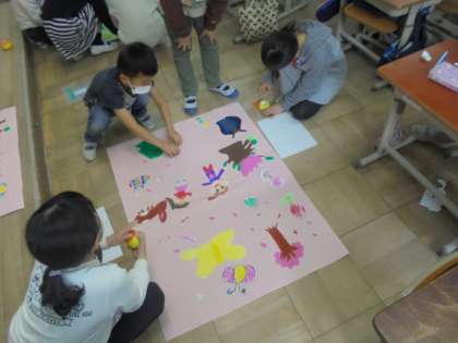 生活科では,新一年生のためにできることはないかと考えて,学校での四季を伝えるポスターを作ることになりました。