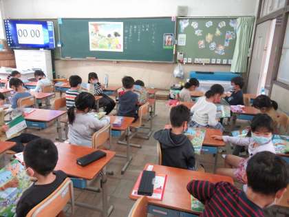 国語では教科書の絵を見ながら,何があるかなど気づいたことを発表したり,