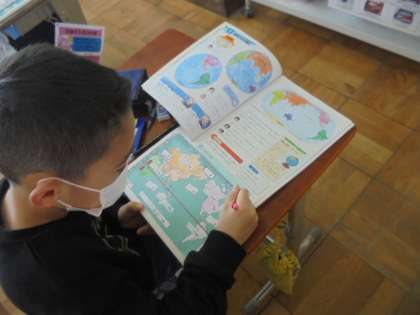 世界にはどのような大陸や海洋があるのかを調べ,ノートにまとめました。