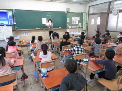 朝読書の時間は,まなびの先生に絵本の読み聞かせをしてもらっています。
