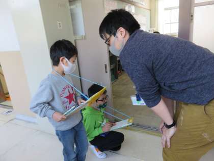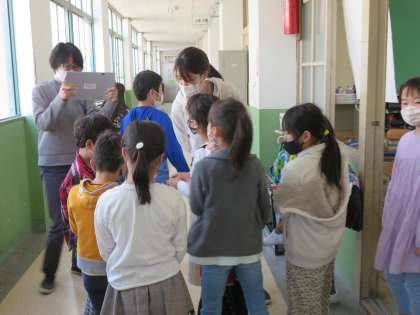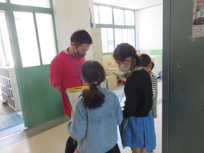 そのためのカードをかくために学校中の先生にインタビューをしています。