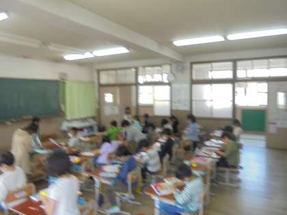 子どもたちは,クレパスを使ってしっかりと色を塗りこんでいました。