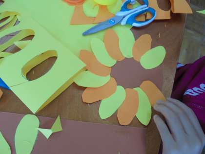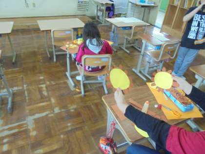 色画用紙を丁寧にきって貼り,作品をつくっていました。