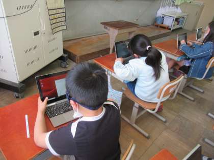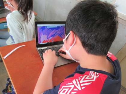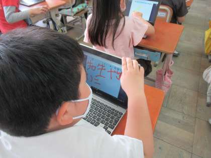 ロイロノートを開けて,「ノートに描いてみる」という活動をしました。好きな色や線を選べることを楽しんでいました。