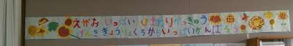 ひまわりの学級目標が完成しました。一人一人が思い思いのひまわりを作り,文字も一文字ずつ,丁寧に色を塗って完成させました。