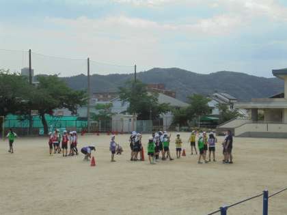 バトンパスがうまくいくように,工夫して声をかけながら取り組んでいます。