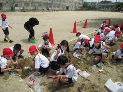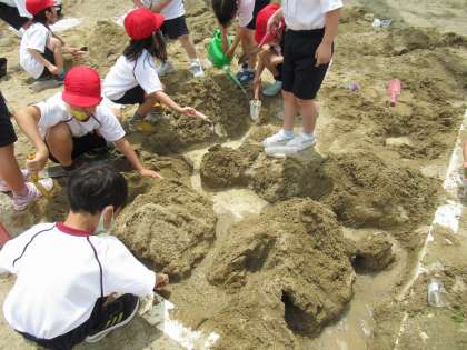 などと砂の感触を楽しみながら,いろいろなことに気づいていました。