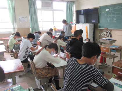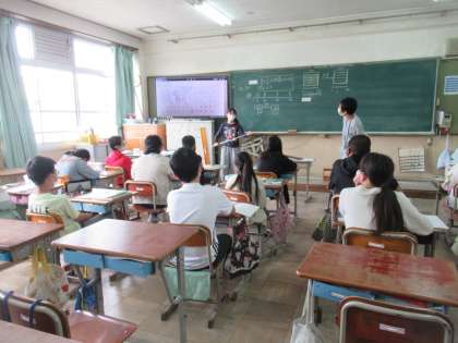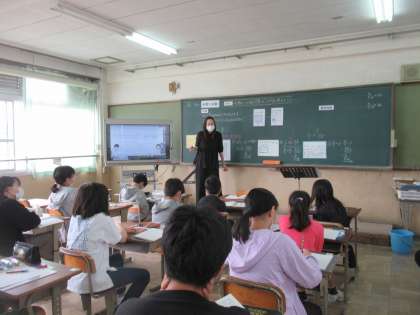分数をかける計算の仕方を考えました。少人数で学習し,一人一人が十分理解できる学習形態を工夫しました。とても集中し,じっくり考える姿が見られました。
