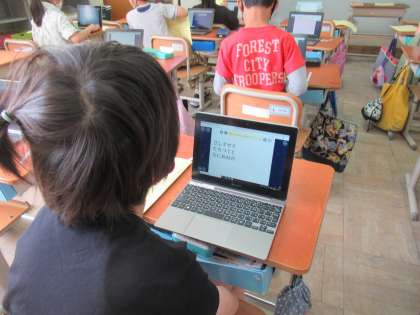 3年生は,ローマ字入力をする練習をしています。ロイロノートに書き込んで,みんなで交流する活動をしました。ローマ字でどのように書くとよいか,家ですすんで調べる子どももいました。