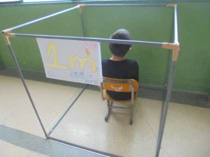 1mの棒をつかって1立方メートルを作ってみました。「こんなに大きいんだ」「20人くらい入れそう」など楽しそうに1立方メートルの大きさを体感していました。