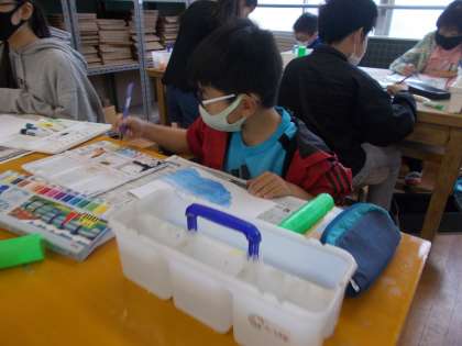 6年生 図画工作科 「この筆あと,どんな空」