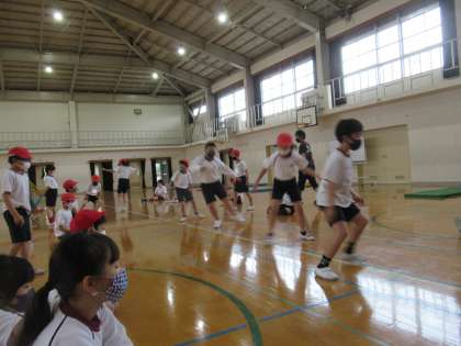 反復横跳びや立ち幅跳びなど,自分の記録を取りながらがんばりました。