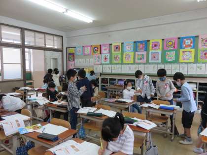 10cmはどのくらいかを手で確認したあと,教室の中で10cmに近い長さのものを探しました。