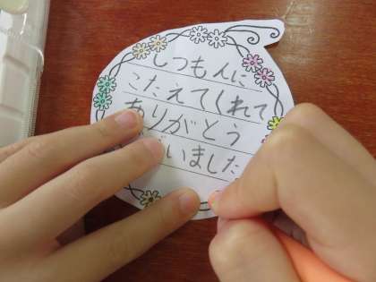 一人ずつ,お礼のカードを書きました。
