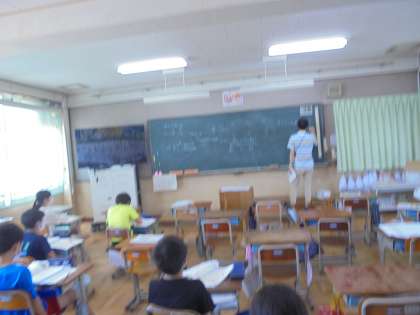 小数のかけ算の復習をしています。少人数でじっくりと復習問題に取り組んでいました。