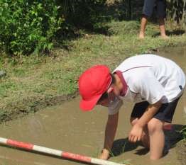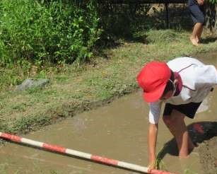 田んぼの泥んこに入って,稲の苗を植える体験は,子どもたちはとても楽しかったようです。田植えを終えた子どもたちは,うれしい気持ちを次々につぶやいていました。「あと30万回やりたい。」「もう一回やりたい。」「楽しかった!」と笑顔いっぱいに,うれしい気持ちを言葉に表していました。無事,今年も田植えが終わったネイチャーランドの田んぼ。これから,稲の生長をしっかり応援していきます。