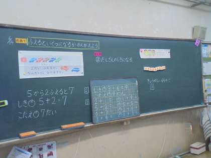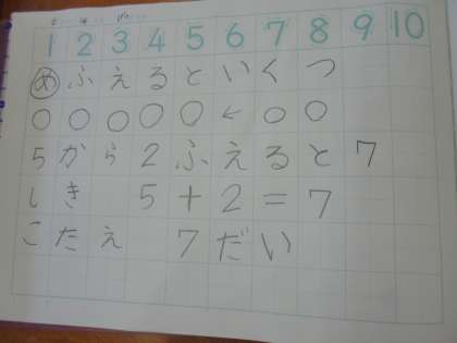 子どもたちは,ノートにしっかりと書いて,増えるときの式について学習できました。