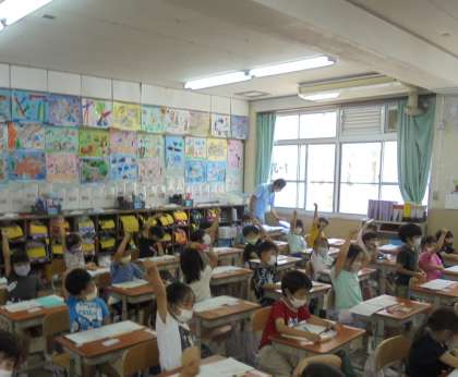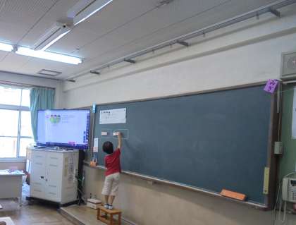 増加するときのたし算について学習しました。黒板の前に出て,子どもたちは操作をしたり,説明したりしていました。