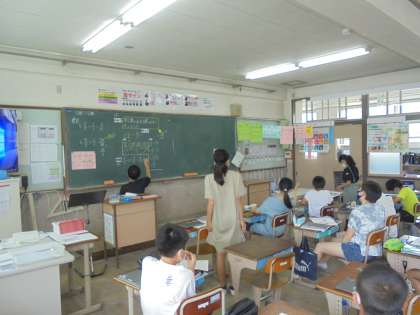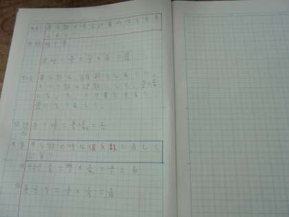 今日は,分数のわり算で,帯分数や整数が入った場合の計算について考えました。