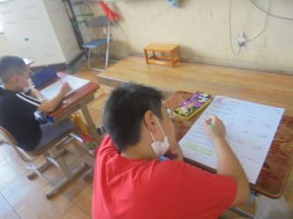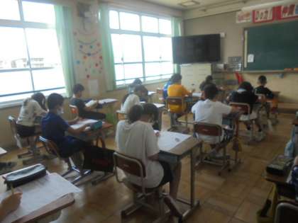 小数のかけ算のテストをしました。何度も計算練習してきた成果を出そうと一生懸命テストに取り組んでいました。