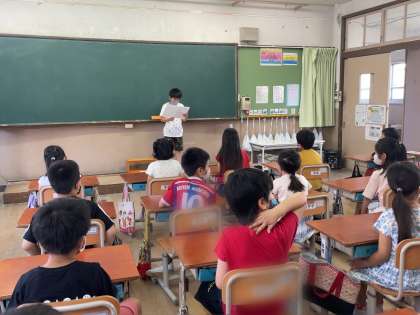 朝,児童会の高学年がフレンズデーのお知らせに来てくれました。