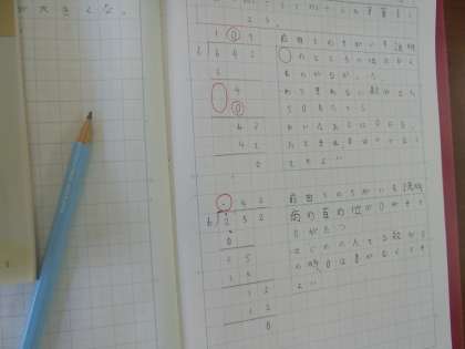 商をたてるときに,割れない場合はどのように筆算で書けばよいのかを話し合いながら,学習しました。