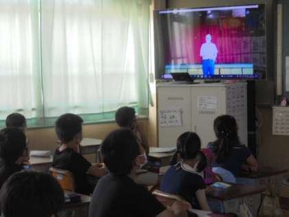 今月もzoomでの児童朝会でした。今日は,右京警察署の方から防犯についての話を聞かせていただきました。