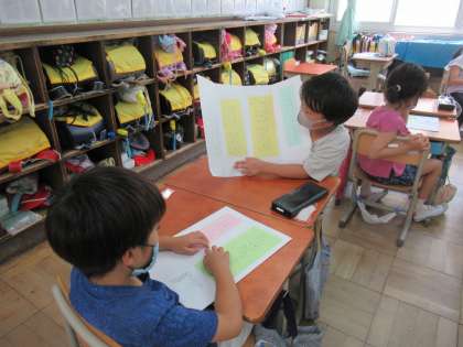 文章の組み立てに気を付けて書いたクイズを,友達と交流しました。