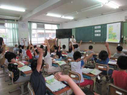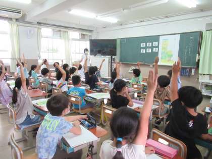1学期初めての授業参観がありました。元気いっぱい手を挙げて,いっぱい発表したり,文字を見つけてノートに書いたりしました。