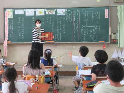 お話を読んで,お話の大体をつかんだり,学習課題について話し合い,『「気持ちの宝箱」に感想をまとめる』というめあてを確かめました。