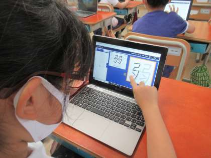 休み時間に,GIGA端末を使って「ミライシード『ドリルパーク』」で,漢字の練習をすすんで行う姿が見られました。雨で外で遊べなくても,GIGA端末を使うと,勉強も楽しいです。