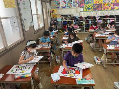今日は,いろいろな色を使ってお花を塗りました。