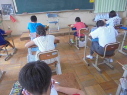 算数の時間に確かめテストを行いました。算数科では2学期も単元によっては,クラスを2つに分けての少人数指導を実施する予定です。