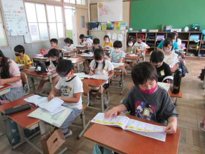 2学期の新しい漢字ドリルを渡し,どんな漢字を学ぶのかを知りました。どんな漢字に出会っていくのか少し不安もある様子でしたが,「漢字の読み音読」ゲームで楽しく見通しをもちました。