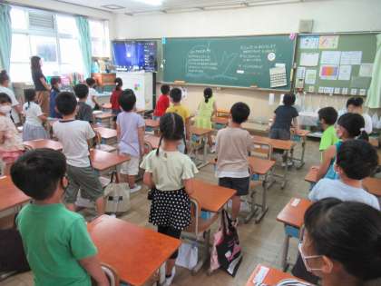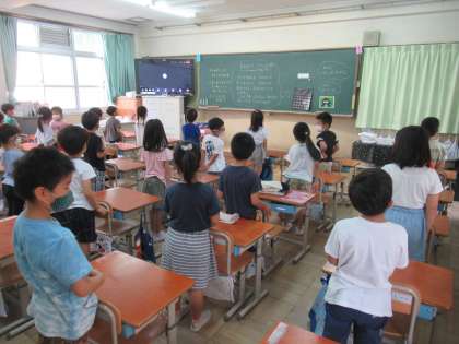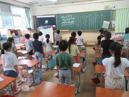 Teamsで始業式を行いました。リモートですが,しっかり指示を聞き,お話も聞いて,夏休みの振り返りと2学期の行事などのめあてをもつことができました。