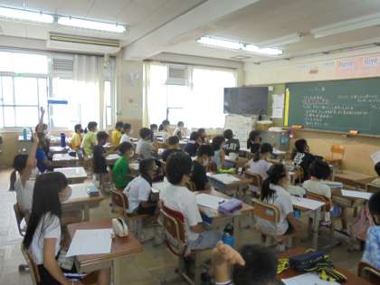 体育参観にむけて,クラスのことについて振り返りながら考えました。これから取り組む演技は,みんなで心を1つにすることが必要で,今のクラスと比べながら考えることができました。