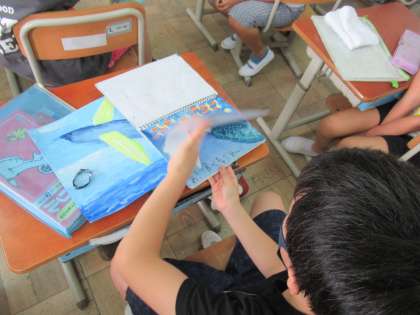 「こっちも見て見て見て!」自由研究を広げて,見せてくれました。すごくよくがんばったことが伝わる,力作でした。