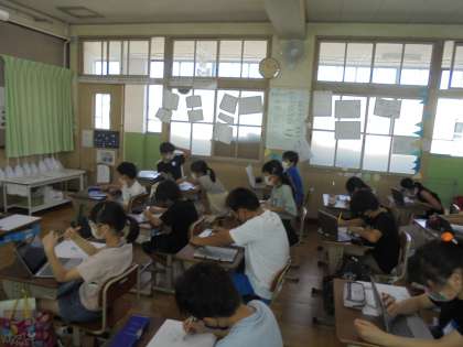 GIGA端末を使って,資料を探して,下書きをしました。丁寧な線で描くことができていました。