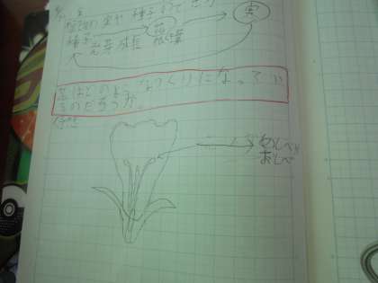種子ができる花のつくりはどのようになっているのかを,文や絵で考えました。