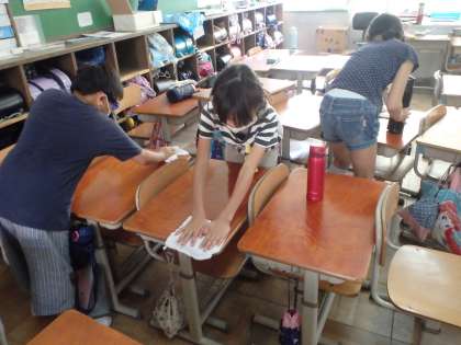 掃除時間には,どのクラスもきれいにしようと頑張っています。