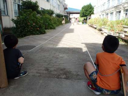 フラワーロードや運動場など,協力して調べていました。
