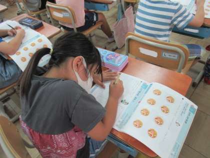 和菓子の美しさを通して,日本のよさについて気付く学習をしました。一生懸命考えて,考えをノートに書きました。