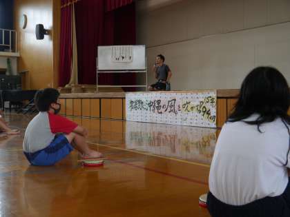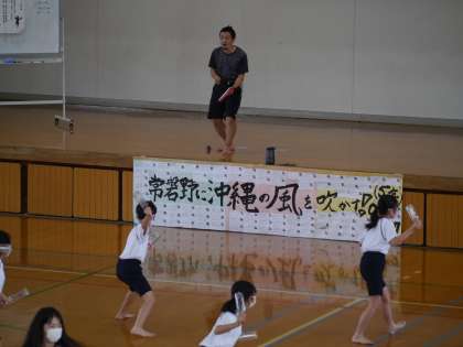 沖縄の風を吹かせようと今日もエイサーの練習に励む5年生。休み時間も音楽や動画を流して,懸命に練習しています。