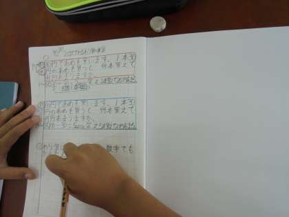 2けたでわるわり算の仕方を学習しています。まずは,何十わる何十で,あまりがどのようになるのかを考えました。