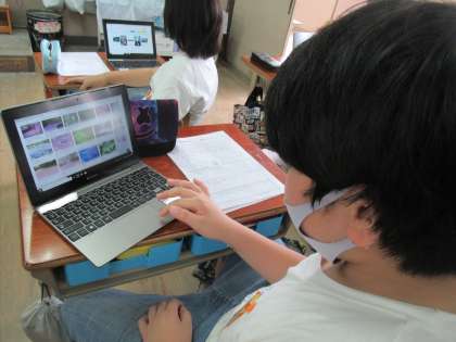 GIGA端末で調べると,新しい発見や,想像していたことがはっきりすることがありました。教室の中だけでは見つけられない景色を見つけました。