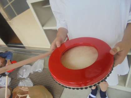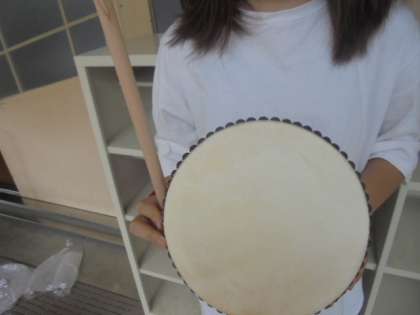 パーランクーとは,エイサーや民俗芸能で使用される手持ちの片張り太鼓です。中国から伝わったそうです。本物のパーランクーがたたけることに感謝の気持ちを忘れず,来週からもエイサーの練習を頑張るぞ!
