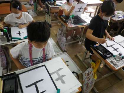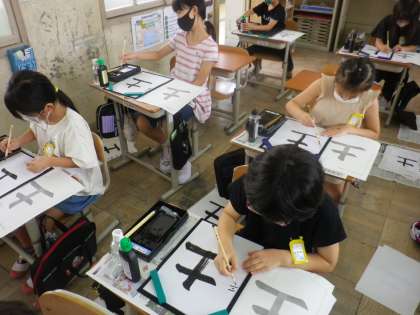 一画一画,はじめと終わりに筆をとめることを意識しながら書くのは難しかったと思いますが,どの子も集中して取り組んでいました。